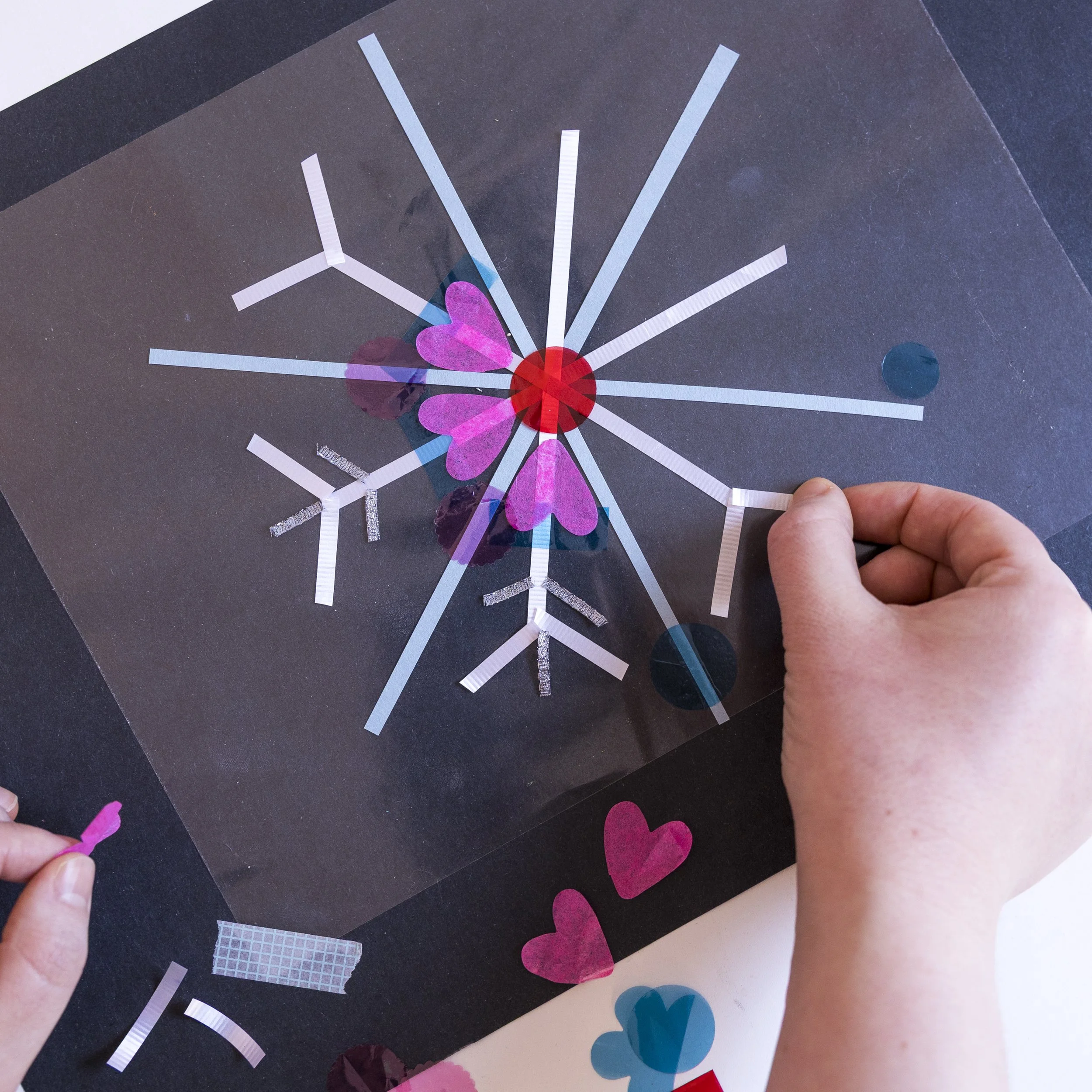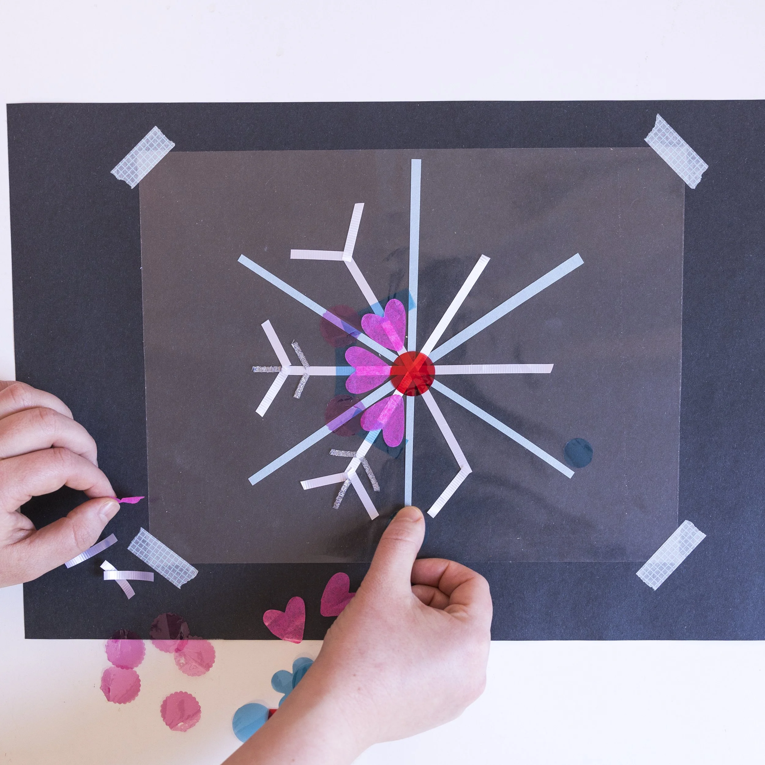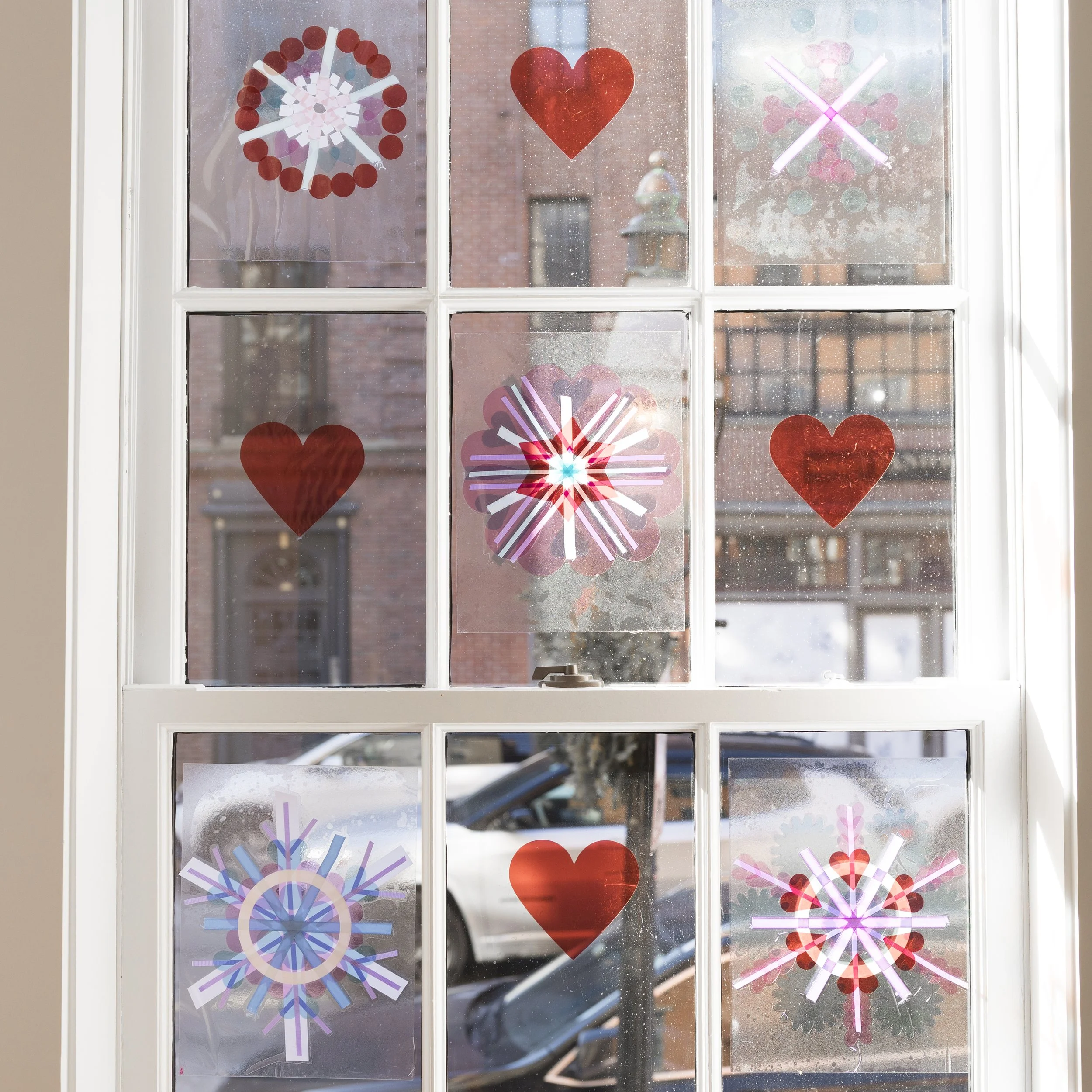 1. We encourage you to show little artist(s) examples of finished window displays to foster creativity and brainstorm some styles or shapes together! This will help guide what shapes you make and colors you use.